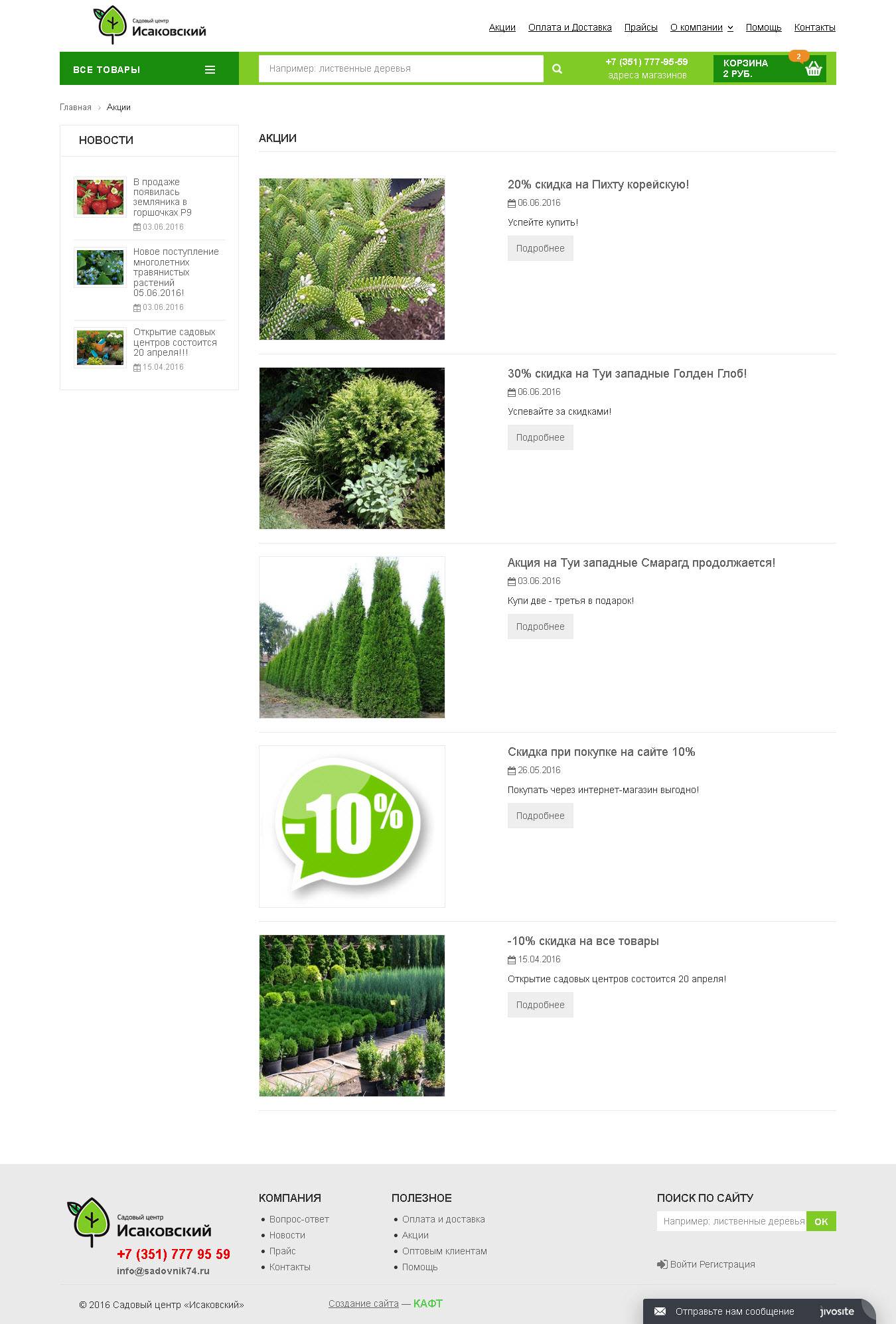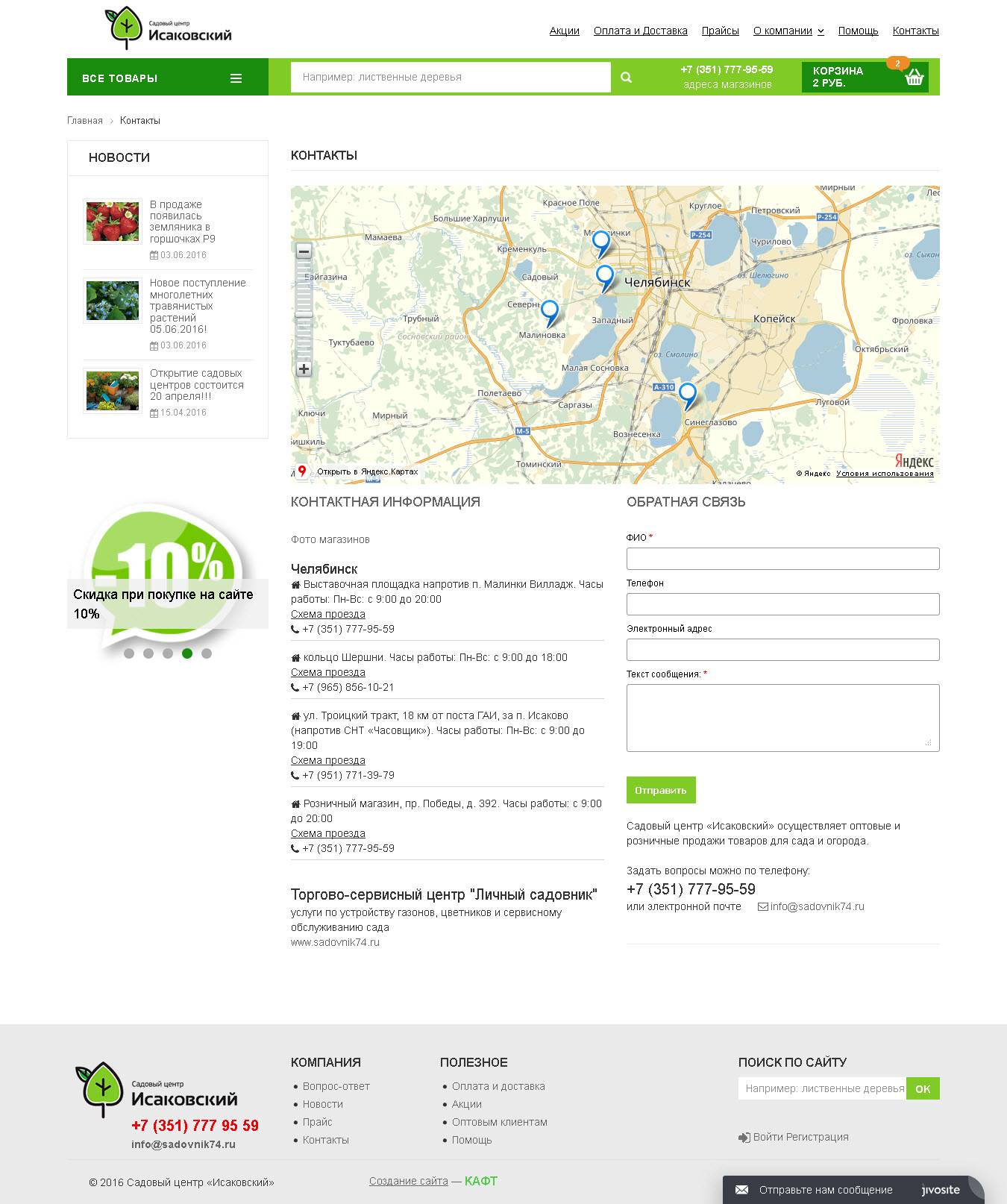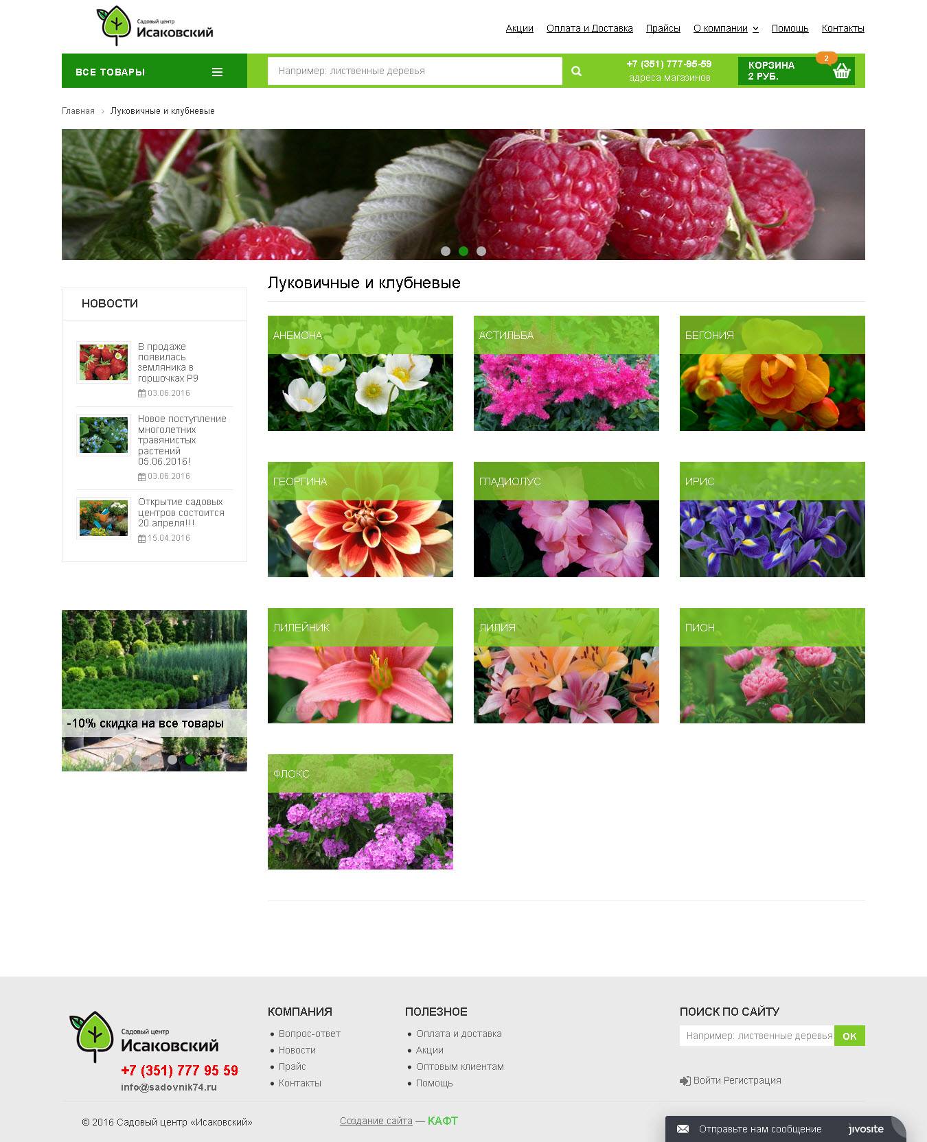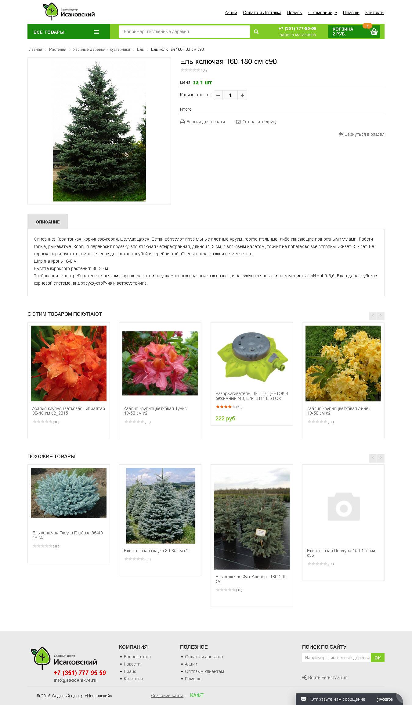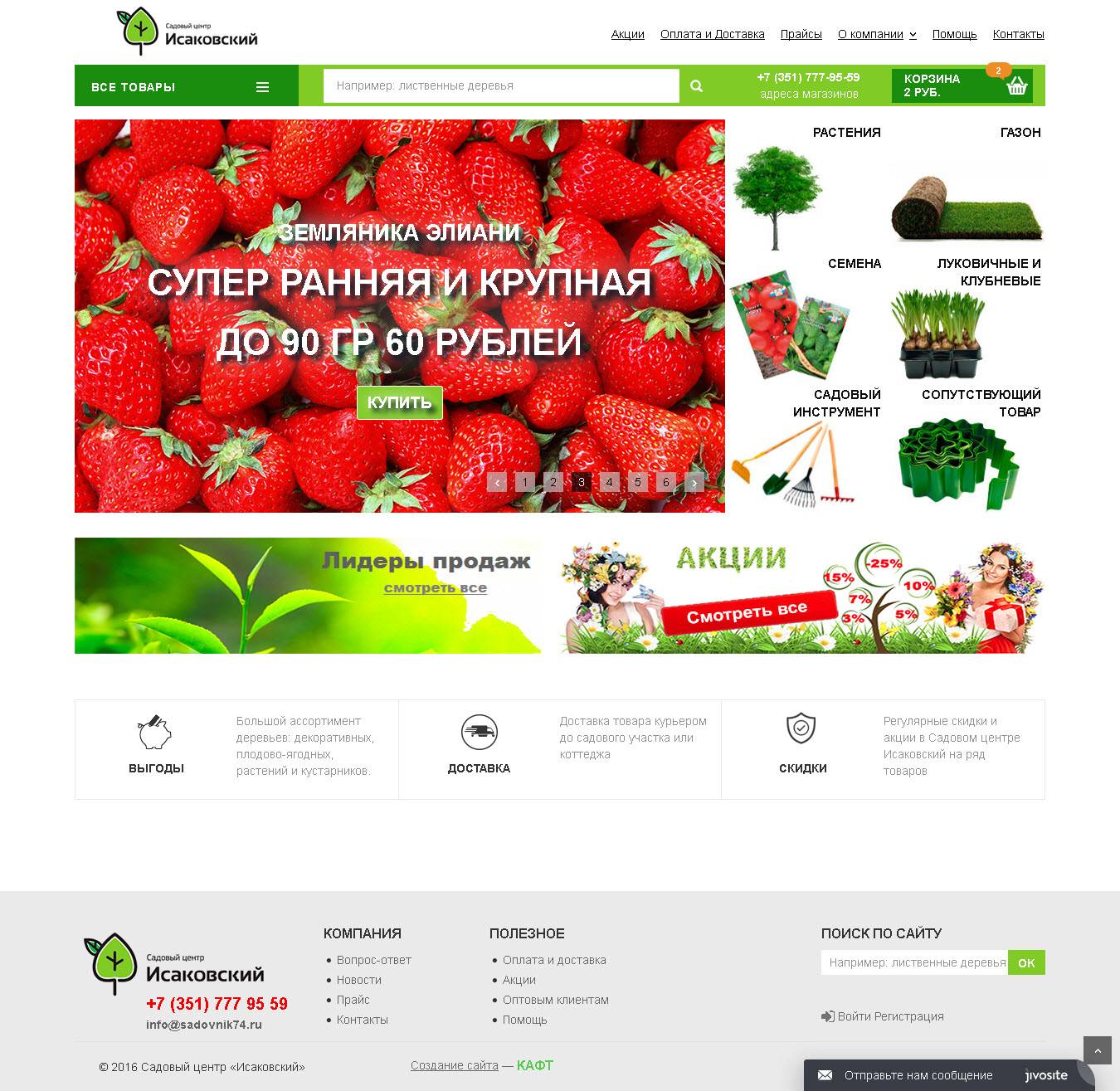 Интернет-магазин для Садового Центра Исаковский был создан на основе Готового решения КАФТ.